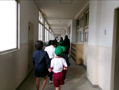 小学2年生が、幼児の手をつなぎ、各学年の教室を案内してくれました。