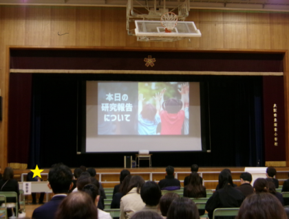 子どもたちの交流の後は、参観された先生方に向けて、3校園の教職員が、研究報告をしました。