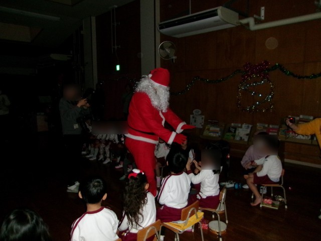 子どもたちはびっくり!!サンタさんに質問をしたり、一人ずつプレゼントをもらったりしました。