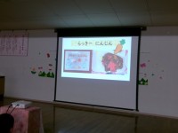 園長先生からは、「だるまさんが」のお話のプレゼントがありました。絵本のだるまさんと同じように、伸びたり縮んだりして体を動かしながら、楽しくお話を聞くことができました。