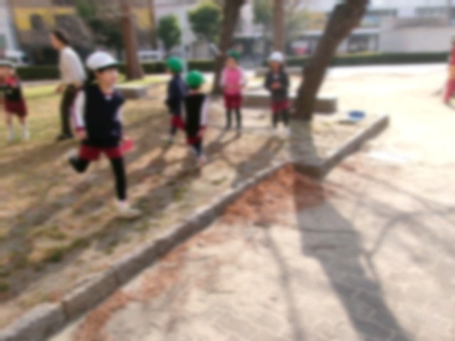 5歳児緑組は、幼稚園の隣にある公園で、フルーツバスケットや宝探しなどをしました。広い公園を力いっぱい楽しそうに走っていました。宝探しでは、ハートがいろいろな所に隠されており、子どもたちは必死になってハートを探し、見つけると嬉しそうに「あった!」と知らせに来たくれました。