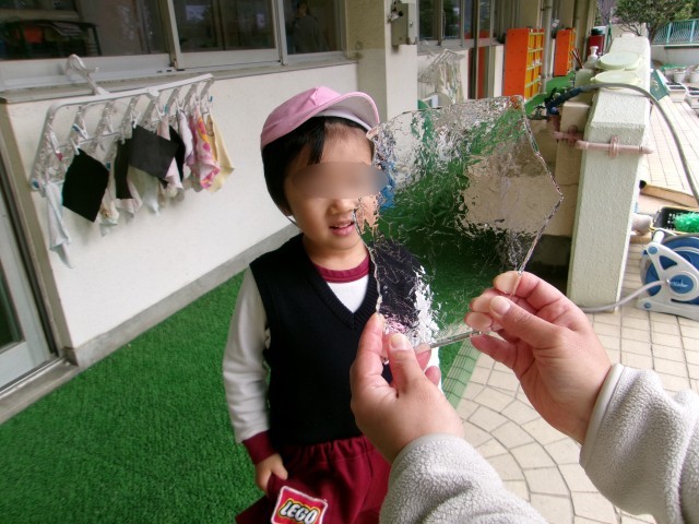 みんなが集まって来て、透き通った氷を覗いたり、「冷たい!」と言いながら触ったりしました。