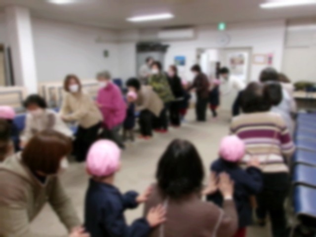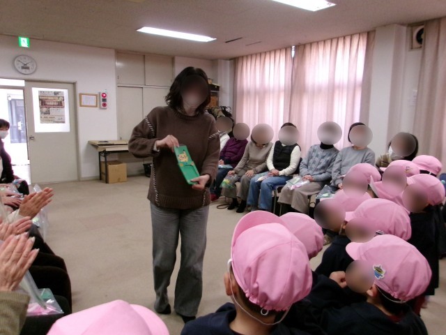 2月20日(金)3歳児桃組が、福祉会館に行って、桜宮地域の皆さんと交流しました。