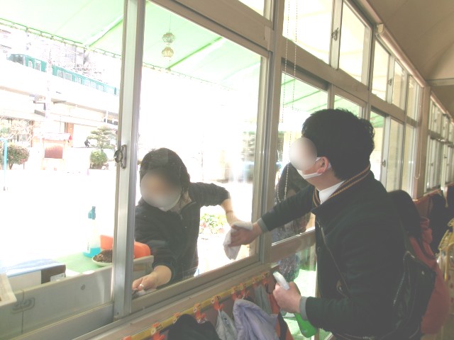 総会後、保育修了式を迎える年長緑組のために、保護者のみなさんが、園内清掃をしてくださり、幼稚園が