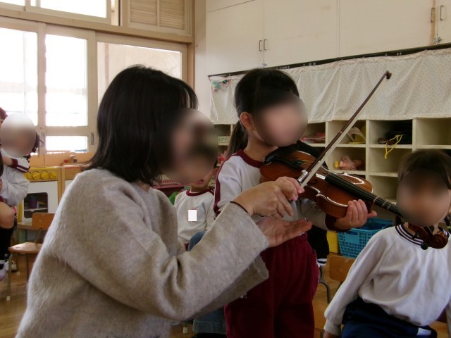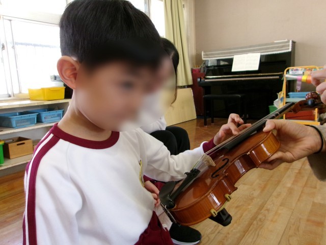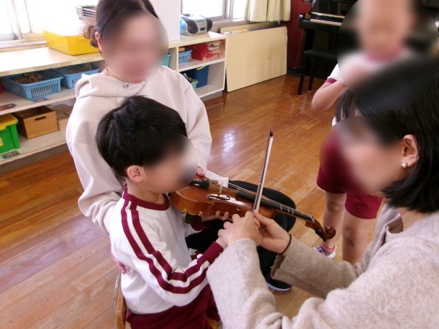 美しいバイオリンの音色、初めて触れるバイオリンにいつもとは違う表情の子どもたちでした。