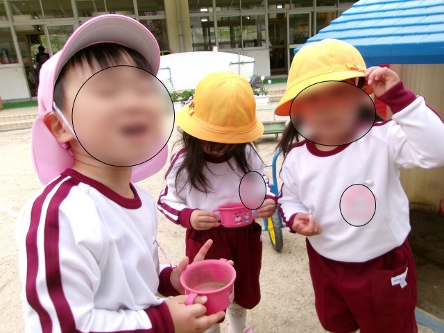 お部屋では、ままごとや車で遊び、お庭では、三輪車や砂場遊びもいっぱい楽しみました。