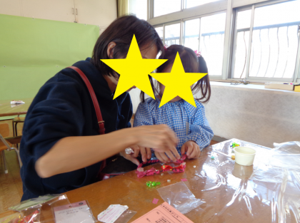 技法もいろいろ楽しみました。水のりとスパンコールやビーズでつくった「キラキラ光る...