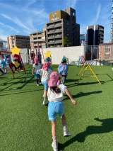 屋上では、青空が近くに感じられ、いつもとは違う遊具に大喜び。 桜宮幼稚園にもある...