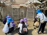 近隣の保育園のお友達が、通用門から幼稚園のうさぎをのぞいていたので、中に入っても...