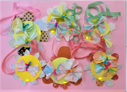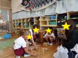 5歳児年長緑組は、先日から風車をつくって遊んでいます。鯉のぼりの先に付けようとつ...