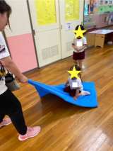 緑組は、お庭の中を散策しました。「黒い陰が見えたよ。忍者かな?!」「忍者歩きで進...