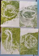 緑色になった魔法の絵の具… 子どもたちが指で絵をかき始めました。 それを紙に写す...