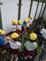 ?4歳児黄組が育てているスイカに やっと雌花が咲きました。 蕾を見つけては、枯れ...