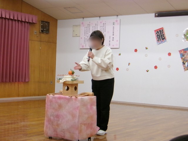 年末に『鏡餅』をつくる様子を見た子どもたち。今日は、木槌を使って鏡開きをしました...