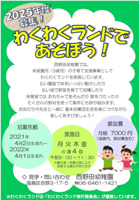 詳細は幼稚園まで連絡ください。06−6461−1421