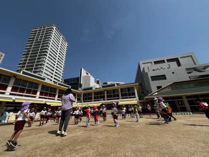 青空の下、さくら組、ふじ組、ワクワクランドのお友達、みんなで身体をいっぱい動かして遊びました!