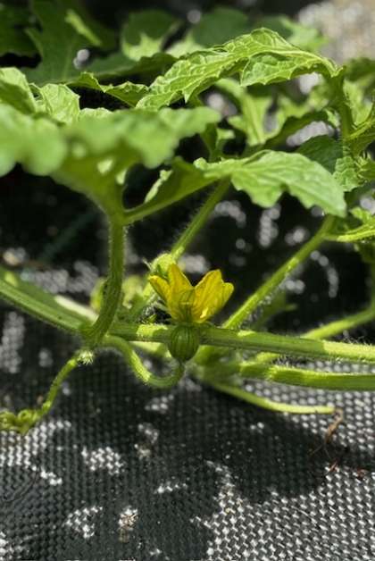可愛らしい小さなスイカの赤ちゃんをこどもたちが見つけました。 早く大きくなぁれ。