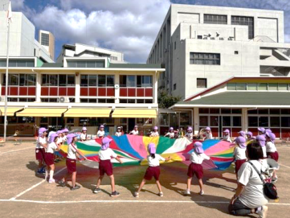 運動会予行 公開日 2024/10/11 更新日 2024/10/11 園の様子 昨日は、はじめての運動会の予行でした。4歳児5歳児お互いに競技を見合いました。 5歳児は「小さい組さん、可愛いしがんばっているな」 4歳児は5歳児の競技の様子をじっと見つめていました。「やってみたいな」と 互いに刺激を受けていたようです。 運動会まで、もう少し時間はありますが、少しずつ運動会に向けて遊びを積み重ねていきたいです。 いいね(0)