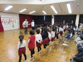 12月24日の終業式の前に「フレッシュコンサート、手あそび うたがいっぱい」として、そうちゃん、にのちゃんが西野田幼稚園に来てくださいました!