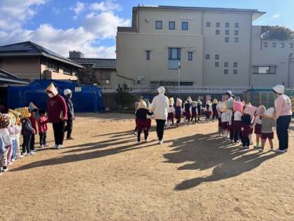 未就園児活動の子ども達は園庭まで、園児は、区民センター4階まで避難訓練をしました。