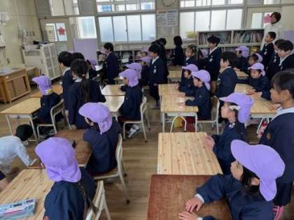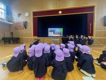 学校紹介や、昔遊び、音読を聞かせてもらい、学校の中や1年生の教室の中を見学しました。
