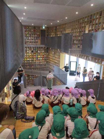 今日は、電車に乗ってこども本の森中之島に園外保育へ出かけました。