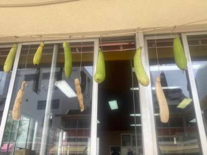 この夏、園で収穫した「へちま」を「たわし」にしようとチャレンジしています!