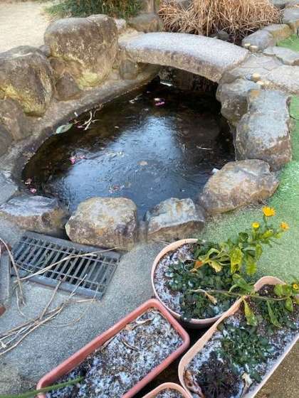 お庭の池も凍っていました。 公開日 2023/01/25 更新日 2023/01/25 園の様子 お庭の池も凍っていました。 霜も降りていたよ。 実際に見たり、触ったりして体験するって大事ですね! いいね(0)