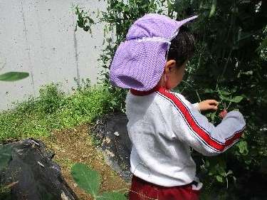 17日月曜日、年長児がスナップエンドウの収穫をしました。大きさを見比べ、大きく膨らんだものや、長いもの、美味しそうなもの、自分で12本選びお家に持ち帰りました。お家では様々な方法で食べていただいたようで、保護者の方がスナップエンドウカードで、子どもたちの様子を知らせてくれました。ありがとうございます。