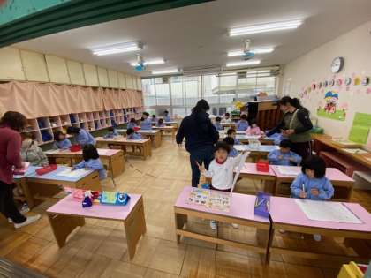 4歳児さくら組さん、今日は製作活動をしました。