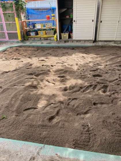 スケーターはペンキを塗り直し、砂場も、耕運機を使って、ふかふかになりました!子どもたちが遊びたくなる環境を整えて待っています!