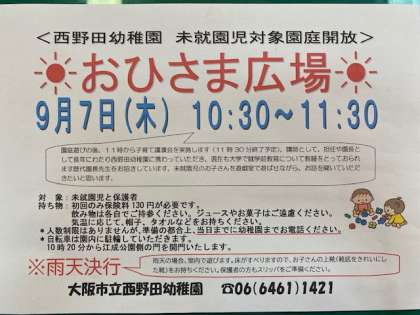 9月7日木曜日、下記の通り未就園児園庭開放を行います。