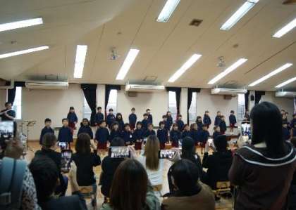 近畿音楽教育研究演奏リハーサル 公開日 2023/11/08 更新日 2023/11/08 園の様子 近畿音楽教育研究演奏リハーサルを保護者向けに行いました。 歴代PTA会長のフルート奏者の方と一緒に♪まつぼくり♪山の音楽家♪ドレミのまほうの3曲を披露しました。 少し緊張気味の子どもたちも、お家の方からたくさんの拍手をいただいて、自信いっぱいの笑顔になりました。 次は本番の金曜日、今日いただいた拍手を力にシンフォニーホールで歌います。 いいね(0)