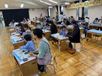 今日は、4歳児の子どもたちが、お家の人と陶芸体験を楽しみました。