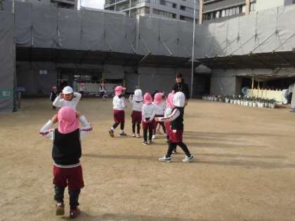 4歳児 さくら組 公開日 2023/12/26 更新日 2023/12/26 園の様子 12月21日(木) 終業式目前のこの日、さくら組では、大掃除の拭き掃除を終えてから、園庭で、バナナ鬼ごっこが始まりました。捕まってもおともだちにタッチしてもらってまた逃げる子、鬼さんは一生懸命に追いかけていました。ぽかぽかニコニコバナナ鬼ごっこを楽しみました。 いいね(0)