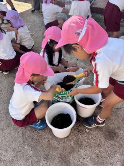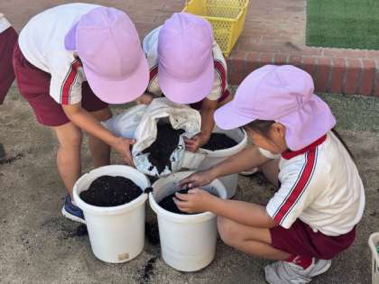 サンサンファームでは、みんなで栽培活動をしていますが、今日は、一人一人、自分の植木鉢に二十日大根を植えました。