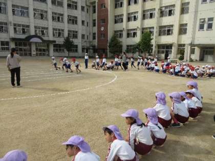 一年生のお兄さんお姉さんと体操をしたり、走る姿を見せてもらったり、玉入れをして、心も気持ちも清々しい時間を過ごしました。帰りには一年生が作ってくれた花道を通って帰りました。子どもたちは笑顔いっぱいで、とても楽しい交流になりました。