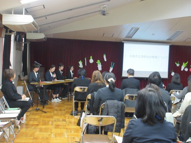 昨日、その研究成果の報告会を開催したところ、大阪市内から公立・私立の幼稚園や保育所、近隣小学校の先生方が70名程参加してくださいました。