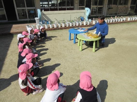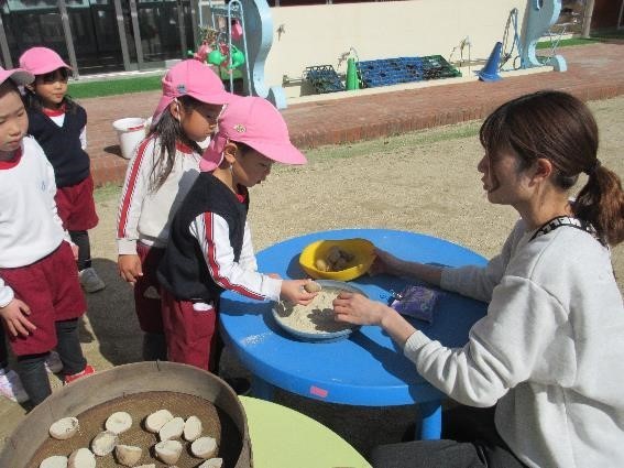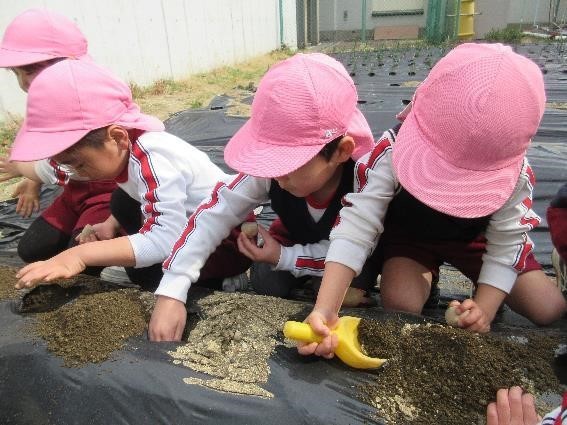 4歳児さくら組の子どもたちがじゃがいもを植えました。