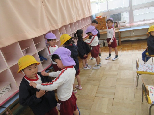朝の準備は、ふじ組のおにいさんおねえさんに手伝ってもらいました。