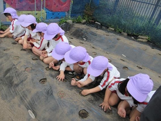 5歳児ふじ組がトウモロコシの種まきをしました。