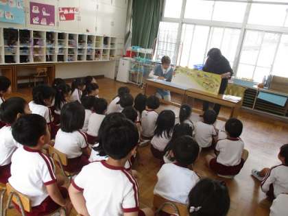 夢中になって見て聞いている子どもたちでした。