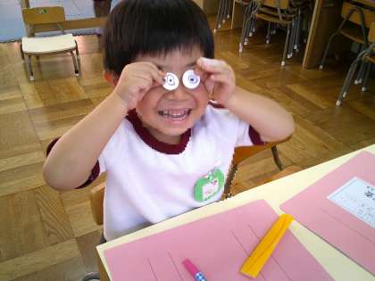 「なにいろめがねのとんぼにしようかな?」「にじいろのはねにする!」とイメージを膨らませてつくっていました。