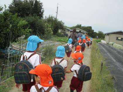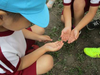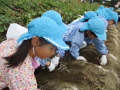 秋の自然物!芋ほり! 公開日 2024/10/29 更新日 2024/10/29 5歳児 幼稚園のみんなで、寝屋農園に芋ほりに行きました。 年長児は年少児と手を繋ぎリードして歩く姿が頼もしかったです。 芋ほりでは、芋が出てくると「見えてきた!」と目を輝かせ友達や教師に知らせていました。また大きな芋が掘れると「やった!!」と満面の笑みでみせてくれました! 昼食後は原っぱで遊び、バッタやトンボを探しました! たくさんの秋の自然に触れることができた園外保育となりました。 いいね(0)