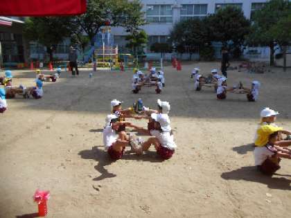 運動会までの取り組み2 公開日 2024/10/29 更新日 2024/10/29 5歳児 年長児で曲を聞き、ダンスの考えを出し合ったり、友達と力を合わせて組体操をしたりと体をたくさん動かし、頑張っていました。運動会当日は指先まで手を伸ばしてダンスをする姿や、友達と気持ちを合わせて演技をする姿が見てもらえたのではないでしょうか。たくさんの拍手ありがとうございました。 いいね(0)