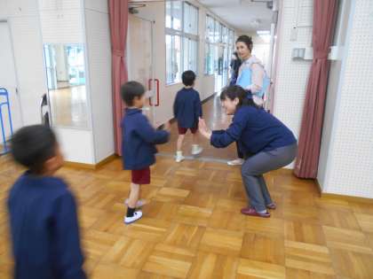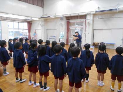 歌唱指導を受けました。 公開日 2024/10/29 更新日 2024/10/29 5歳児 今日は、音楽会に向けて、鷺洲小学校の副校長先生に歌唱指導をしていただきました。歌を歌う時の姿勢や声の出し方、遠くの人に歌を届ける意識をもつということを知り、意識しながら、歌を歌っていました。副校長先生と一緒に歌を歌うことができ、とても楽しかったようです。 いいね(0)