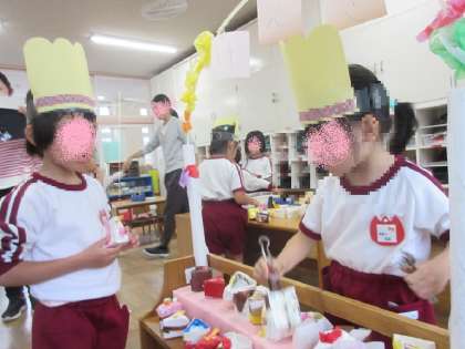 レストランだけではなく、お寿司屋さんやケーキ屋さんなど新しいお店もどんどん出てきて、思いを膨らませながら遊ぶことを楽しんでいます♪