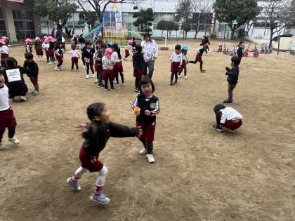 急いでみんなで外に出て、走り回ったり、コップをもって雪を集めようとしたりしていました。「とっても寒かったけどまた降ってほしいね」「雪だるまのチャチャチャ歌ったから降ったんかな?」と、それぞれが雪を楽しんだようでした。また降ってきたらいいね。