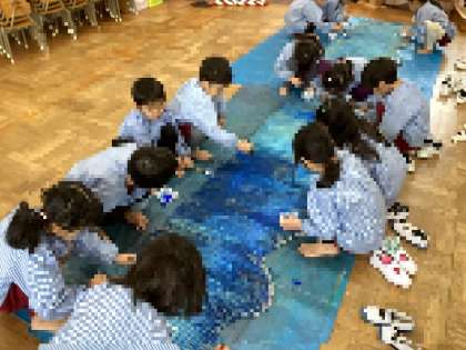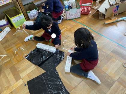 「つきぐみのてんまのとらやん」をしようと友達と力を合わせて大道具づくりをしました。「〇〇もいる!」「〇〇もつくろう!」と考えを伝え合って形にする姿が見られました。生活発表会当日は大道具の出し入れも子どもたちが行います。応援、よろしくお願いします。