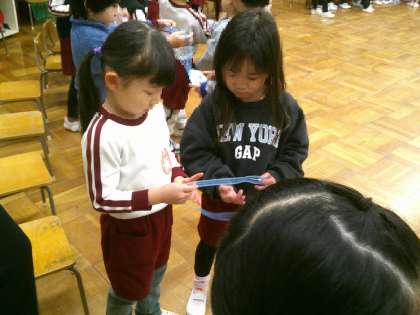 4歳児のさくら組・ばら組のお友達が受付をしたり、園庭の遊び場を準備したり、プレゼントのメダルをつくったりと、大活躍しました。